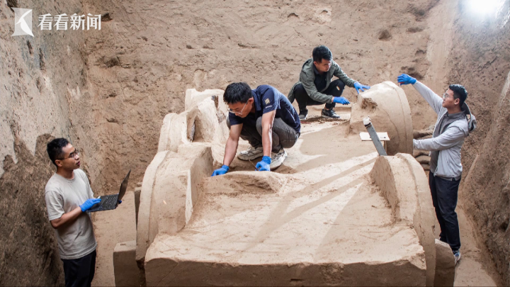寨沟遗址位于陕西省榆林市清涧县,是一处商代大型聚落遗址,曾入选“2023年度全国十大考古新发现”,自2022年至今共出土40余辆墓内葬车,其中发掘出土的一辆双辕车,将我国双辕车的出现时间上推到了商代晚期。